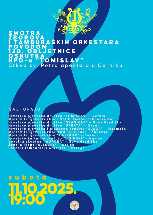 Hrvatsko pjevačko društvo Tomislav iz Cernika sa zadovoljstvom Vas poziva na