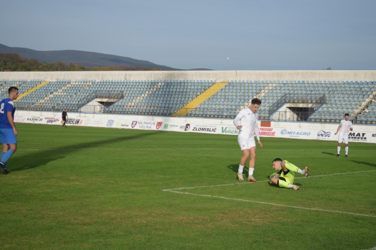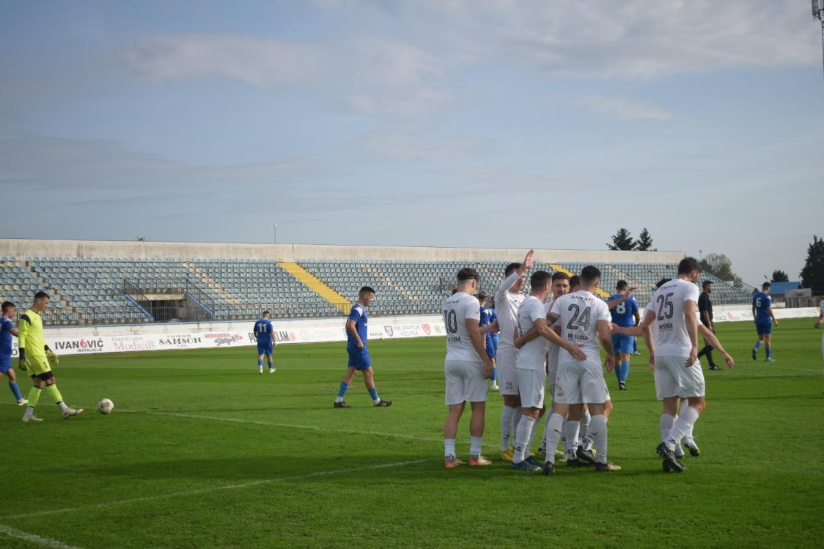 Danas je odigrana prvenstvena utakmica u kojoj je novogradiška Sloga gostovala u Velikoj. U zanimljivoj utakmici naša ekipa slavila je sa rezultatom 5:0. Odmah na početku utakmice imao je odličnu priliku Matošević, ali je golman odličnom obranom sačuvao mrežu. U 20. minuti korner za Slogu izvodi Benić, a najbolje se u snašao Vladimir Blažević koji loptu glavom šalje u mrežu. U 25. minuti nova prilika za Slogu, ali ovaj puta Bungić nije uspio realizirati dobru priliku. U 32. minuti vodstvo Sloge povećao je Kašljević te se na predah odlazi sa rezultatom 0:2. U drugom djelu Sloga nastavlja s dobrom igrom, a to se ubrzo isplatilo kada je lopta još jednom našla put do mreže Papuka. Ovaj puta strijelac je bio Alen Solin koji je postigao autogol. U 78. minuti odlična kontra Sloge preko Grbića koji pronalazi Bungića, a ovaj puta Bungić to iskorištava i postiže zgoditak. Točku na "i" stavio je Ivo Benić u 87. minuti odličnim golom sa dvadesetak metara iz slobodnog udarca.