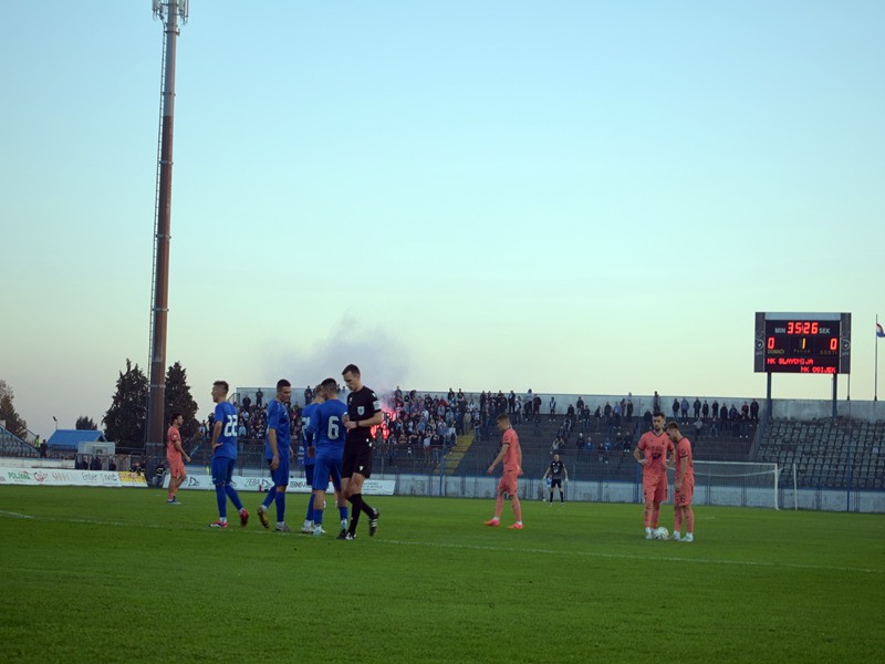 Domaćin je pustio dominaciju gostima, a oni su uzvraćali u kontra napadima. Velika borbenost kod domaćina tako da NK Osijek u prvom poluvremenu nije izborio ni jednu stopostotnu priliku za gol.