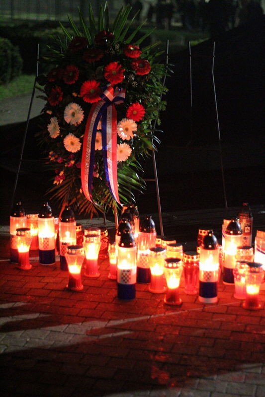 kod spomenika poginulih branitelja gdje je položen vijenac i zapaliti lampioni. Nastavak