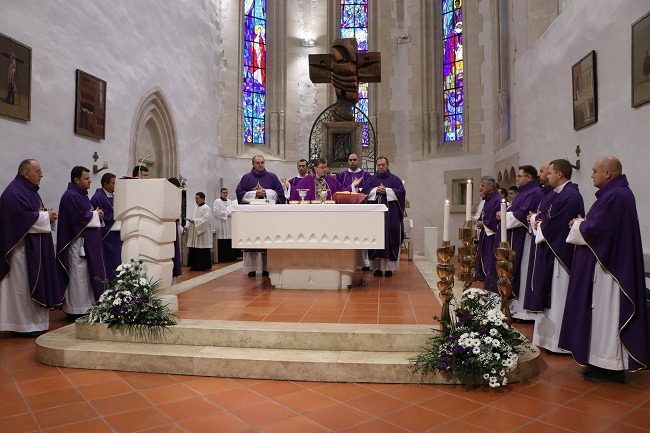 nazočni su se uputili u svetišnu baziliku gdje je slijedilo euharistijsko slavlje za duše ubijenih,