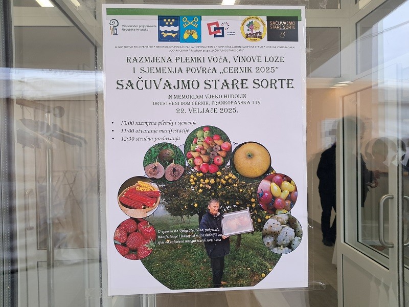 Danas tijekom cijelog dana u prostoru Hrvatskog doma u Cerniku i u šatoru ispred Doma odvijati će se razmjena plemki voća,vinove loze i sjemenja povrća „In memoriam Vjeko Hudolin”.