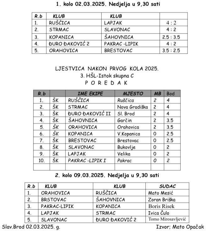 Slavonski Brod 2.3.2025. Odigrano je prvo kolo 3. Hrvatske šahovske
