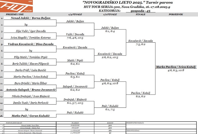 sastavu Vedran Kovačević (DJ) / Dino Zavada (NA) rezultatom 4:6, 6:3, 10:8.
