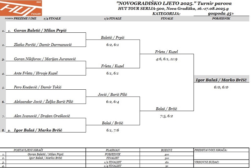 TENISKI TURNIR PAROVA „NOVOGRADIŠKO LJETO 2025.“