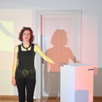 Izložba Iskušavanje slike, kako pojašnjava sama autorica, vizualno je istraživanje, svjetlosna instalacija kojom proširuje prostor putem svjetlosti koja se optički miješa sa ekstenzijama prostora, odnosno folijama koje se nalaze na kubusima u izlagačkom prostoru koje se zatim optički miješaju sa svjetlošću koja izlazi iz projektora i tako dolazi do promjene slike i samoga prostora.