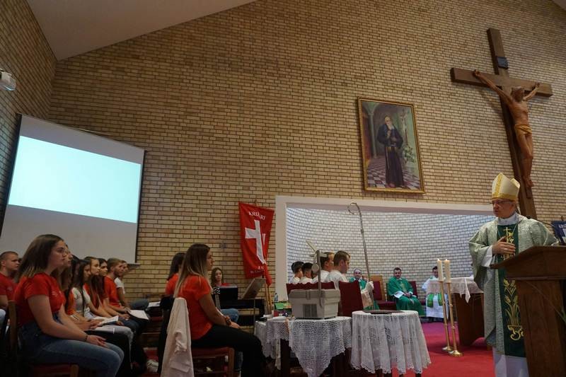 Uvodeći u misno slavlje, biskup je rekao kako je došao posvjedočiti radost mladim križarima u Župi sv. Leopolda što nastoje sebe pronalaziti u Bogu i s njime se izgrađivati, te im čestitati 25. obljetnicu postojanja. Podsjetivši kako nije beznačajno što su križari započeli ovdje djelovati gotovo istovremeno s uspostavom Požeške biskupije, biskup je ustvrdio da su oni svoja mladenačka nastojanja ugradili u požešku mjesnu Crkvu, obogatili je svojom mladenačkom vjerom i svime onim što su snagom vjere minulih dvadeset i pet godina živjeli. Spomenuo je kako su neki od njih tijekom tog vremena postali stariji po godinama koje su protekle, ali da su ostali mladi duhom, svjedočeći da u Isusu Kristu žele takvima trajno ostati. Zahvalio im je za sve dobro koje su uz Božju pomoć učinili. Pozdravio je predstavnike križarskih bratstava iz drugih dijelova Hrvatske, na čelu s predsjednikom njihove središnjice Dariom Burjanom.