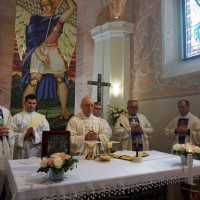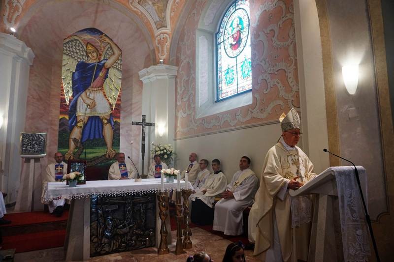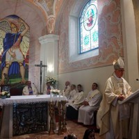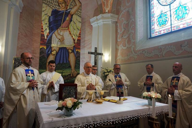 Produbljujući govor o anđelima, biskup je ustvrdio da oni pripadaju Božjem svijetu, višem od naše materijalne stvarnosti, i da današnja svetkovina u našu vjerničku svijest doziva činjenicu postojanja nevidljive bitke između duha dobra i duha zla, između Zloga i palih anđela koji mu služe u njegovim nastojanjima da uništi Božji svijet. Napomenuo je da se taj duh zla u Svetom Pismu naziva Sotona ili Đavao, lažac koji je protivnik života i čovjeka. Kazao je da anđeli vjerni Bogu služe njegovu djelu u nama, onemogućujući Zloga u njegovim namjerama. Tri arkanđela, koja danas slavimo i čija su nam imena objavljena u Svetom Pismu - Mihael (Tko je kao Bog?), Gabriel (Bog je moć) i Rafael (Bog je zdravlje) - jesu naši pomoćnici s kojima valja računati u nastojanju da naša neponovljiva i jedinstvena osoba bude konačno u Isusu Kristu ostvarena u onoj slobodi koja se zove spasenje. Pozvao je sudionike slavlja neka se ne zadovolje time da budu samo uključeni u svijet znanstvenih mogućnosti, u virtualni svijet interneta i drugih digitalnih mogućnosti, nego požele svojom vjerom pripadati Božjem svijetu, da se redovitim sudjelovanjem na svetoj misi i primanjem svetih sakramenta trajno uključuju u višu razinu života na kojoj Isus Krist uz službu Božjih anđela može ostvariti konačnu pobjedu nad zlom i obdariti puninom života na nebesima. Pozvao ih je da mole svete arkanđele za pomoć u boju protiv svega onoga što je đavolski smrtni udarac u naše postojanje. Pozvao je sudionike slavlja da mole za svetu Crkvu, osobito za svoju Požešku biskupiju, da nas sv. Mihael brani od onih koji se bore protiv Crkve jer ne žele po njezinu služenju ostvarenje Božjeg djela čovjekova spasenja.
