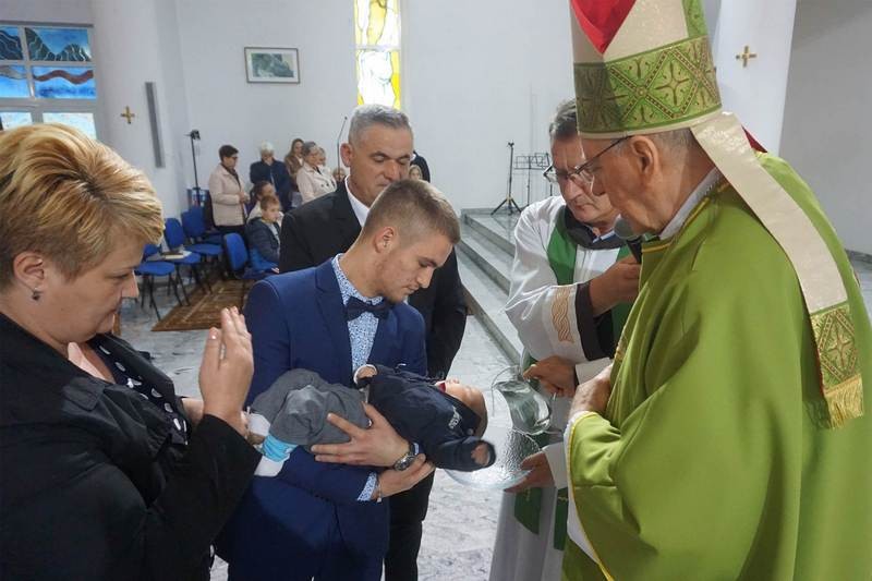 BISKUP ŠKVORČEVIĆ KRSTIO PETO DIJETE RODITELJA MIJATOVIĆ U OKUČANIMA