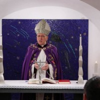 Ustvrdivši kako se nitko drugi na zemlji osim Krista nije usudio za sebe reći: „Ja sam Put i Istina i Život“, biskup je naglasio da je oblikovanje svoje savjesti i srca u povezanosti s njime najbolja i najuspješnija životna formula. Napomenuo je da ima onih koji smatraju da je čovjek sretan onda kad može raditi što hoće, kazavši da sloboda nije raditi ono što se nekome prohtije i sviđa, nego raditi ono što je dobro i istinito. Stoga je poručio pripravnicima za sakramente da svoju slobodu i dostojanstvo najbolje potvrđuju kad Isusu Kristu otvaraju prostore svoga duha. Crkva je služiteljica njegove pobjede nad smrću u našim životima po molitvi, naviještanju Božje riječi, po kojoj u naš duh ulazi Božje svjetlo, osobito pak po sakramentu svetog krštenja i drugim sakramentima, ustvrdio je biskup. Još je rekao da u krštenju povjeravamo same sebe Isusu Kristu, da on u nama snagom svoga pobjedničkog Duha nad zlom i smrću ostvari svoje djelo, te nas uvede u puninu istine i daruje životni smisao. Poručio je pripravnicima za sakramente da će krštenjem biti ugrađeni u Crkvu, koja nije ljudska organizacija, nego živi organizam u kojem je prisutan Isus Krist i međusobno nas povezuje svojim Duhom, te u nama teče milosna snaga njegove ljubavi i postajemo dionici njegove pobjede nad smrću. Poželio je da bude blagoslovljeno sve što će katekumeni učiniti u svojoj pripravi za sakramente kršćanske inicijacije, i da se njihovim primanjem ne dogodi tek nešto izvanjsko, nego da zahvatom Isusova Duha postanu novi ljudi, te iskuse svu ljepotu kršćanstva. Završavajući homiliju, biskup je pozvao pripravnike za svete sakramente da Crkvu, čijim će članovima postati primanjem sakramenata kršćanske inicijacije, nikad ne promatraju površno, usredotočujući se na ono što ljudi, pokatkad slabi, nemoćni i grešni u njoj čine, nego da uvijek očima vjere i u ljudskim slabostima prepoznaju Isusovu jakost a u nemoćima njegovu pobjedu, te da on po djelu koje će u njima ostvarivati daruje novu ljepotu i snagu našoj hrvatskoj domovini.