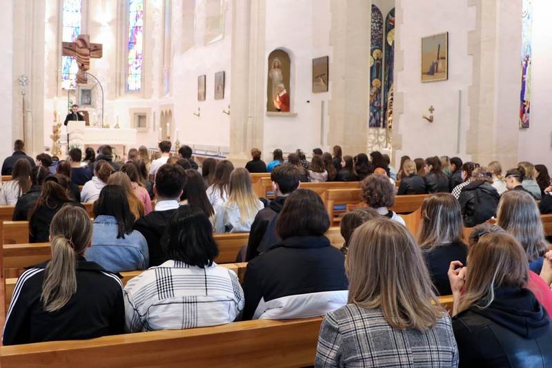 Pozdravljajući nazočne svećenike koji im služe kao vjeroučitelji i duhovnici u njihovim školama, kao i vjeroučitelje laike, domaćeg župnika i voditelja svetišta Ivana Ereiza te aspirante Požeškog kolegija koji žele postati svećenici, biskup je pozvao mlade hodočasnike da se na ovom hodočašću napune Božjim energijama i postanu duhovno snažniji ljudi, budni i sposobni u vjeri. Vjera je moja nutarnja, dubinska budnost za Boga. Biti budan za Boga znači biti najbolje budan za samoga sebe i za druge ljude, ustvrdio je biskup. Rekao je gimnazijalcima i srednjoškolcima kako je razumljivo da nastoje u školi postići visoke ocjene, ali da im on želi najveće dobro: da budu vjernici. Osvrnuvši se na rat u Ukrajini, kazao je kako je glavni uzrok toga pretužnog i preteškog stanja činjenica da je ponestalo povjerenja, najprije među političarima a onda i među pripadnicima zaraćenih naroda. Kad se izgubi povjerenje među ljudima, počinje se drugoga krivo gledati do te mjere da se smatra kako ga se smije i ubiti, opravdavajući to nekim osobnim interesom, ustvrdio je biskup, Naglasio je: Kad bi se i ruski i ukrajinski vođe oslobodili nemoći uzajamnog nepovjerenja i mržnje koja razara i ubija te počeli jedni prema drugima živjeti povjerenja, ponašati se u skladu s njime, započelo bi vrijeme mira, međusobnog poštovanja i novog života.