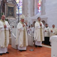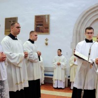 Nakon homilije uslijedio je obred primanja spomenute trojice bogoslova među kandidate Požeške biskupije za sveti red Đakonata i Prezbiterata. Rektor Nadbiskupskog bogoslovnog sjemeništa u Zagrebu Željko Faltak predstavio je bogoslove, na što je slijedila molitva i blagoslov kojim ih je biskup Antun primio među kandidate. Na svršetku misnoga slavlja biskup je rekao nazočnoj djeci kako je radostan što je zajedno s njima mogao danas zahvaliti Bogu i Isusovoj Majci za 75 godina života koje sutra navršava, za 50 godina svećeništva od kojih je 25 godina u biskupskom služenju. Nakon Molitve za Požešku biskupiju, te popričesne molitve otpjevana je pjesma „Kraljice neba, raduj se“. Biskup je na kraju pozvao djecu da provjere čiji odlaze s ovoga hodočašća? Odgovorivši da odlaze kao Isusovi učenici, biskup je dodao djeci da odlaze i kao Marijini sinovi i kćeri, jer nam je ona darovala Isusa i pomaže da uvijek budemo njegovi. Uslijedio je potom čin povjere Isusovoj Majci. Biskup je čestitao bogoslovima koji su danas uvršteni među kandidate za svete redove, spomenuvši da se na slavlju uz svećenike nalaze i četvorica đakona, trojica iz Požeške biskupije i jedan iz zagrebačke Franjevačke provincije, koji će u sljedećem mjesecu primiti red svećeništva i doći među vjernike u ime Isusovo kao služitelji njihovih duša. Još je podsjetio da je sutra Nedjelja „Dobrog Pastira“ i pozvao na molitvu za nova duhovna zvanja i vjernost onih koji su se odazvali.