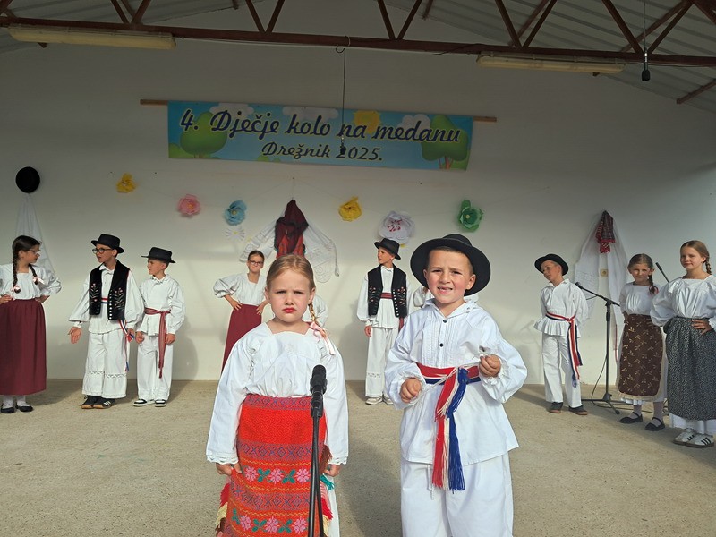 “Već 20 godina imamo “Kolo na medanu” našu manifestaciju u selu i kako se tu uvijek na medanu plesalo i pjevalo tako smo odlučili da krenemo i s najmlađima. Tako da već 4. godinu za redom imamo “Dječje kolo na medanu” i vrlo je posjećeno, što je još jedan pokazatelj da je to bila odlična ideja” – istaknula je predsjednica KUD-a Drežnik Martina Krauz.