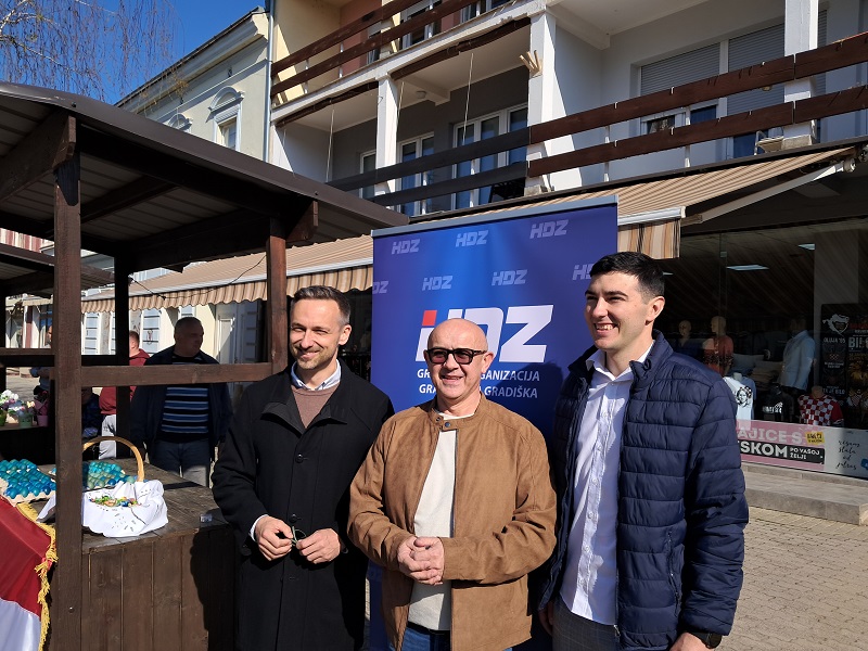 Danas je mladež gradske organizacije HDZ-a Nova Gradiška zajedno sa ostalim članovima stranke Novogradiščane darivala Uskrsnim pisanicama. Vjernici i oni koji drže do običaja rado su se danas zaustavljali ispred štanda da uzmu pisanicu ali i da porazgovaraju sa predstavnicima HDZ-a.