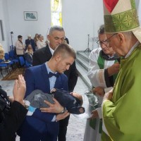 BISKUP ŠKVORČEVIĆ KRSTIO PETO DIJETE RODITELJA MIJATOVIĆ U OKUČANIMA