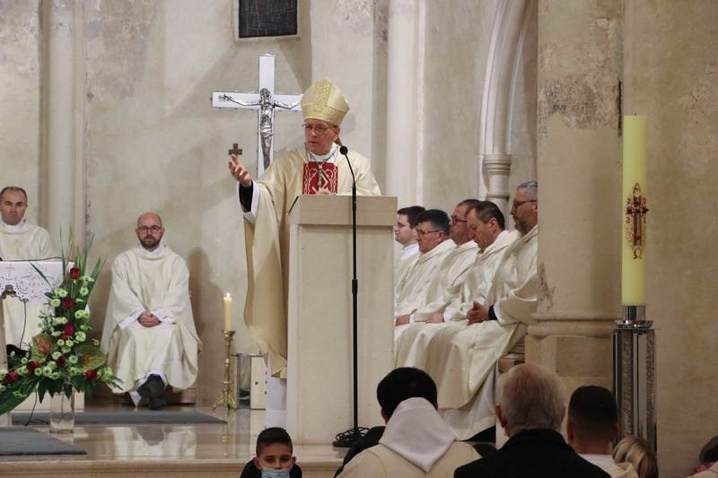 Polazeći od naviještene Božje riječi, biskup je progovorio o otajstvu prisutnosti, ponajprije Božje. Osvrnuo se na ulomak prvog čitanja iz Prve knjige o kraljevima, koji prikazuje kako je mudri kralj Salomon, u želji da svojim ljudskim rukama i pameću Bogu izgradi hram i uresi ga svojim bogatstvom, u molitvi započeo dijalog s Bogom, očitujući zadivljenost i ljudskom umu dokraja nedokučivom mogućnošću da se Bog svojom prisutnošću nastani u hramu koji je izgradio. Prisutnost je nešto što se ničim ne može ograničiti, jer je ona duhovna stvarnost, ustvrdio je biskup, naglasivši kako je prisutnost prvenstveno pitanje osobe. Za razliku od nekog materijalnog predmeta koji se tvrdo i hladno može nalaziti samo na jednom mjestu, osoba svojom pameću i duhom u istom trenutku može biti prisutna na različitim mjestima. Spoznavši čudesnu moć Božje osobne prisutnosti, kralj Salomon zna da ona nadilazi svaki materijalni prostor, i da se Bog svojom prisutnošću u konačnici želi nastaniti u dubini našeg ljudskog bića, ustvrdio je biskup. Upozorio je na mogućnost da se u nama nastani prisutnost sebičnosti, zla i Zloga, koja čovjeka razara i otuđuje, pokreće da pred druge iznosi ono što je mračno, nemoćno, čega smo svakodnevno svjedoci kako u javnom životu na političkoj, gospodarskoj i drugim razinama, tako i u obiteljima. Biskup je pozvao sudionike slavlja, napose djecu i mlade da i oni s kraljem Salomonom požele biti ljudi Božje prisutnosti, i da mu - dolazeći u ovu i u druge crkve - otvaraju svoje srce, savjest i duh te se u njima nastani Božja prisutnost, i da po njoj budu građevina Božja, hram Duha Svetoga, kako nas potiče apostol Pavao u ulomku iz Poslanice Efežanima, naviješten u drugom čitanju.