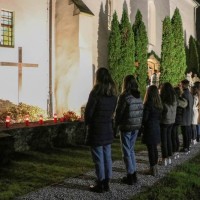 Nakon popričesne molitve, pri svršetku slavlja obljetnice posvete crkve sv. Lovre, zaštitnika Požeške biskupije, biskup Antun je zajedno s nazočnima uputio Bogu molitvu za Požešku biskupiju. Pročitao je zatim zapis iz Matice umrlih požeške Župe Sv. Terezije, koji u nekoliko redaka sažima bogat i duhovno plodonosni život isusovca Antuna Kanižlića, kao i ulomak iz njegove oporuke, u kojoj je izrazio želju da bude pokopan u crkvi sv. Lovre, a svoje sugrađane zamolio da mole za njegovu dušu. Potom je biskup sa svećenicima sišao u kriptu i ondje izmolio molitvu odrješenja i blagoslova njegova groba, te je sve sudionike slavlja, napose učenike pozvao da u narednim danima dođu razgledati izložbu Kanižlićevih djela koja su postavljena u spomenutoj kripti na spomen tog znamenitog Požežanina.
