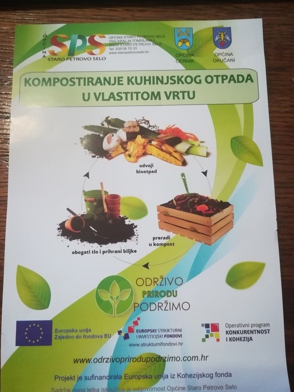 Jedan od načina smanjenja otpada, a naročito biootpada je i kompostiranje, a putem letaka i pamfleta tvrtka Sloboština nastoji educirati i potaknuti sve one koji su u mogućnosti, odnosno, imaju uvjete za to, da kompostiraju takvu vrstu otpada, primjerice hranu, travu i slično jer upravo takva vrsta otpada čini velik udio u miješanom otpadu, a na ovakav način, kompostiranjem, postaje koristan. „ Zahvaljujem se svim građanima koji sudjeluju i prihvaćaju naše savjete i odgovorno se ponašaju prema okolišu jer na ovaj način svi zajedno štitimo našu Slavoniju i našu općinu od zagađenja.” - rekao je Golub.