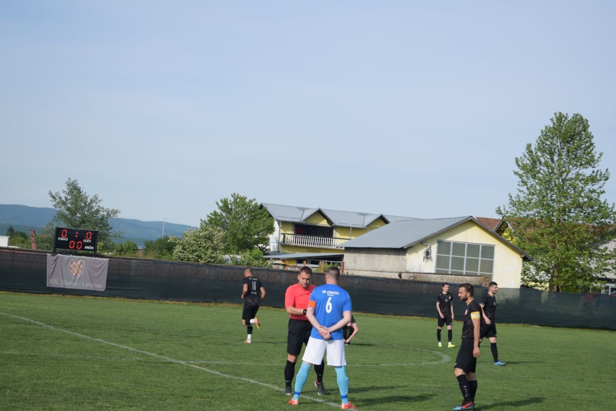 Danas je odigrana utakmica između Slavena i Croatie u Ljupini. Bila je to utakmica u kojoj je domaćin napadao od prve minute, ali golman gostiju je bio nesavladiv. Prvu veliku priliku u prvom poluvremenu imala je ekipa Croatie iz Tisovca, ali je Brkljača spasio Slaven i izbio loptu sa crte gola... Gosti su imali još nekoliko prilika, ali bez prave završnice. U 31. minuti utakmice gostujući igrač u šestnaest metara pravi prekršaj i sudac pokazuje na bijelu točku. Siguran izvođač sa jedanaest metara bio je Bojan Bokan koji je doveo domaćina u vodstvo od 1:0 te se s tim rezultatom otišlo na predah. U drugom poluvremenu Slaven je ubacio u petu brzinu i stvarao prilike, a u 60.minuti utakmice Jakić je povećao vodstvo na 2:0. Do kraja utakmice Slaven je zabio još jedan pogodak, a počasni gol za goste zabio je Starčević u 89. minuti i tako smanjio rezultat na 3:1.