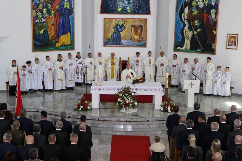 Pored toga, ne smijemo zaboraviti da je ljubav milosrdna, moćna opraštati. Kad poput Isusa praštanjem i milosrđem pristupamo zlu i zločincu, uspostavlja se pravednost koja nadilazi pravednost po načelu odmazde: „Oko za oko, zub za zub“, služimo pomirenju ljudi, izgrađujemo Domovinu kao zajedništvo u slobodi. Po ljubavi ulazimo u Božji svijet, gdje vladaju životvorni odnosi, oslobođeni uvjetovanosti sebičnošću. To je Božji svijet pobjede nad smrću u Isusu Kristu. Ljubav naših hrvatskih branitelja združujemo u ovoj svetoj misi s Isusovom ljubavlju na križu, u kojoj svaka ljudska ljubav i žrtva dobivaju svoje puno ostvarenje i smisao. Molimo Gospodina da nas obdari ljubavlju koja je moćna opraštati neprijateljima i zločincima, pobjeđivati zarobljenost diktatom počinjena zla, te tako današnji spomen na naše poginule branitelje, kao i druge ratne stradalnike bude događaj božanskih dimenzija. Neka tako bude.«, zaključio je biskup Antun homiliju.