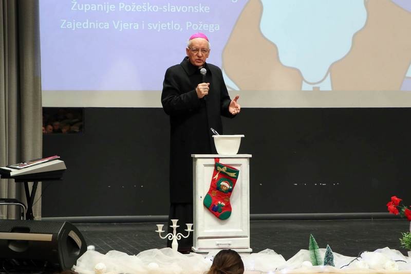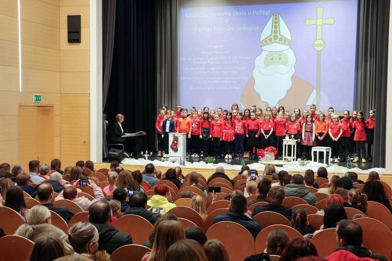 Na svršetku misnog slavlja biskup je zamolio sv. Nikolu da svakom sudioniku slavlja, a posebno djeci i mladima izmoli najdragocjeniji dar Duha Svetoga – ljubav koja sve pobjeđuje, sve nosi i svemu daje smisao. Zahvalio im je za sudjelovanje na ovom slavlju, osobito mladima koji su pjevali i karitasovim volonterima koji su organizirali program. Nakon misnog slavlja učenici Katoličke osnovne škole u Požegi izveli su u Dvorani sv. Terezije Avilske nikolinjski program. U prigodnoj riječi biskup Antun je nazočnima poručio da čovjek može tijekom života puno toga naučiti, ali da je najdragocjenije ono što on iz svog srca zna iznositi pred druge: dobrotu, plemenitost, ljubav, radost i mir. Kazao je da nas sv. Nikola uči upravo takvom pristupu. Veličina dara koji jedni drugima dajemo nije u materijalnom predmetu, nego u ljubavi, dobroti i plemenitosti kojom smo to učinili. Takvim darivanjem postajemo veliki mi, prostor u kojem živimo, naša obitelji i škola. Svima, a osobito malenima poželio je puno radosti i Božjeg blagoslova zagovorom sv. Nikole. Na kraju programa sv. Nikola je djeci s poteškoćama u razvoju i s invaliditetom podijelio darove.