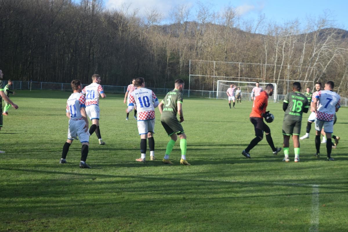 Jučer je odigrana prvenstvena utakmica u kojoj je Croatia ugostila Zvonimir iz Gornje Vrbe u Tisovcu. Već u 9. minuti domaćin dolazi u vodstvo preko Smiljanića nakon odličnog projektila sa dvadesetak metara lopta je završila u golu. Nakon toga gosti preuzimaju inicijativu i stvaraju prilike, a u 42. minuti dolaze do izjednačenja preko Ivana Marića. Na predah se otišlo sa tim rezultatom. U drugom djelu Zvonimir je konkretniji i ima više prilika, ali Croatia se odlično drži i čeka svoju priliku preko kontranapada. Međutim, rezultat se do kraja nije mijenjao pa je podjela bodova bilo najrealnije rješenje u Tisovcu.
