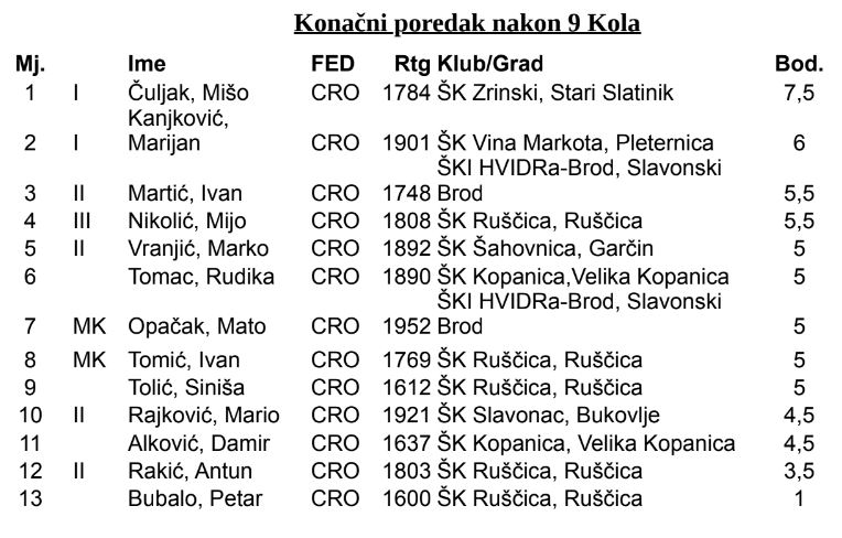 - 3.mjesto brončano odličje II Ivan Martić 5.5 ŠKI Hvidra-Brod , Sl. Brod